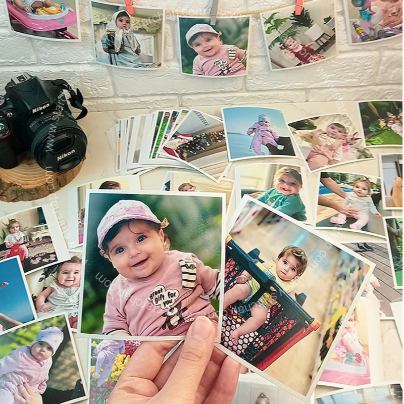عکس مربعی 10 در 10 سانتیمتر با تکنولوژی چاپ ULTRA HD تولید میشود که وضوح و شفافیت بینظیری به تصاویر میبخشد. این عکسها روی کاغذهایی از جنس مات، براق و سیلک درجه یک ژاپنی چاپ میشوند که پشت آنها نشان برند شرکت حک شده است و اصالت محصول را تضمین میکند.